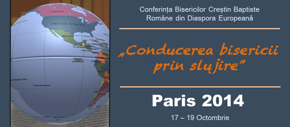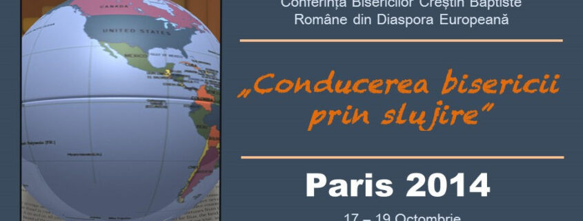 „Conducerea bisericii prin slujire” este titlul celei de-a cincea conferinţă a baptiştilor români din diaspora europeană care a avut loc în data de 17-19 Octombrie 2014 şi a fost găzduită de biserica baptistă română “Speranţa” din Paris. Conferinţa a fost organizată de Uniunea Bisericilor Creștine Baptiste din România, prin Departamentul de Misiune al UBR. A fost prezent președintele cultului – Otniel Bunaciu, Sorin Bădrăgan – decanul Institutului Teologic Baptist din Bucureşti, Samuel Stan – reprezentant al Convenției Baptistilor Români din America de Nord și Alexandru Vlașin.